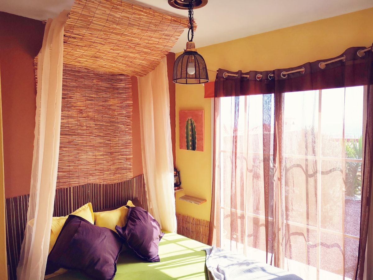 Apartment exclusively for couples with sea view, WIFI, near beaches and in the center of Corralejo. Suite with spacious bedroom with king-size bed and Android TV lcd 32" Spectacular views on both sides, even from the bed, through extensive windows, being able to see the volcanoes and beaches. Full equipped kitchen Included in each stay: Towels: 2 shower towels + 1 sink towel per person Sheets: 1 set of sheets for one week and 2 sets for more than a week Toilet paper: 2 rolls per bathroom