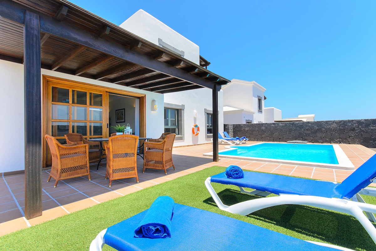 Charming house very well appointed, New AirCond. splendid ocean view and nature. NEW!! Solar water heater and drinking water purifier. Ideal for lovers and those who want to relax or be free. Fast & free wifi and TV Sat + Netflix Terrace protected of 28m2. Pretty Canarian garden. 5 minutes by car from most beautiful beaches of Las Dunas de Corralejo and 15 minutes from Corralejo 3 other apartments in available in Corralejo, ask me Paradise for surf, beach, hiking Possibility of extra nights
