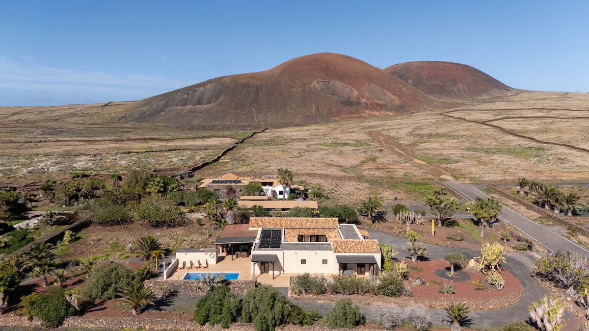 Absolute tranquility, incredible views, a stunning villa. 250m from the center of Lajares. Close to the beaches of Corralejo and El Cotillo. We heat the pool from November to May. Note. Please fill in the correct amount of guests in your search, prices are different for 2, 3, 4, 5 or 6 guests.
