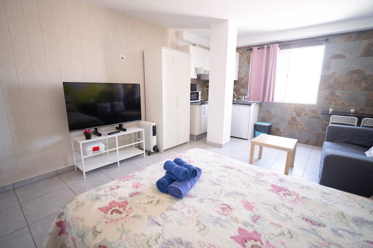 Gran Tarajal zona El Palmeral. Apartamento de 27m2, de una sola planta, con cocina - estar, dormitorio, baño y patio exterior, piscina privada, solárium y barbacoa. Es de nueva construcción ideal para pareja. Zona tranquila, cercano al centro de salud y a 10 minutos caminando de la magnifica playa de Gran Tarajal, pueblo en el que encontraras todo tipo de servicios y establecimientos, ( bancos, farmacias, restaurantes, supermercados y tiendas para compras etc.. )