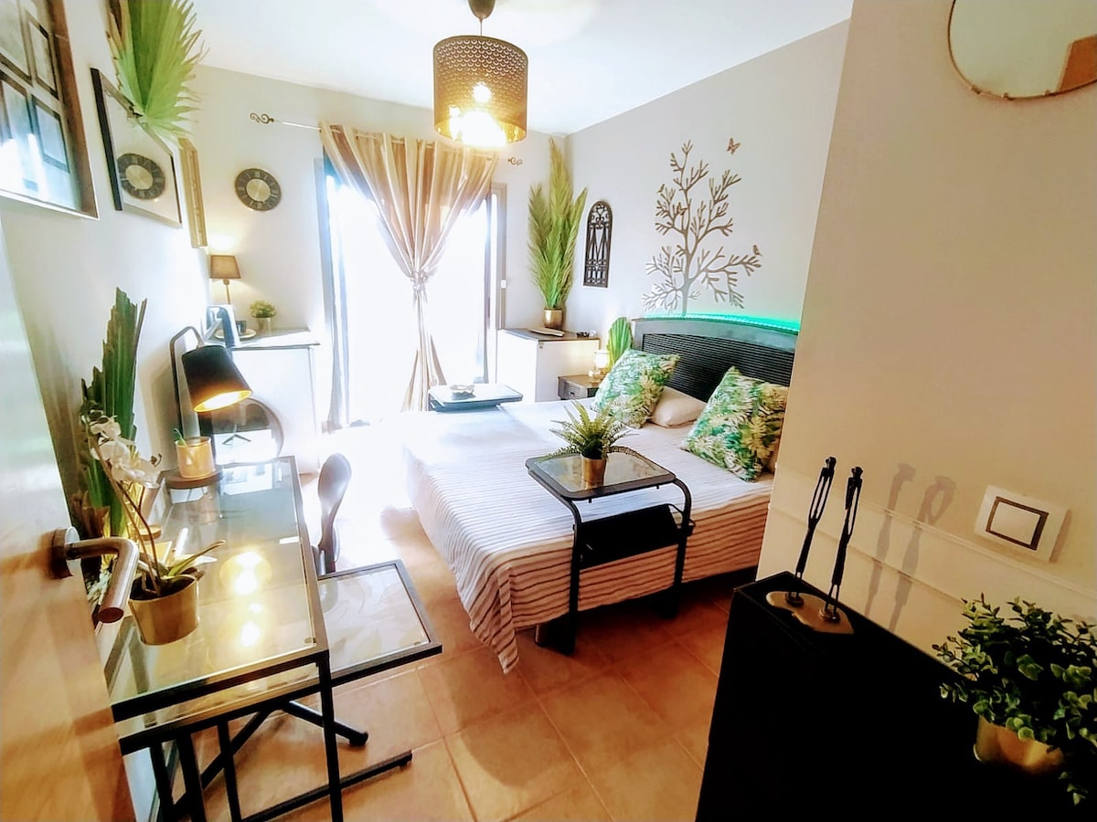 En este alojamiento se respira tranquilidad: ¡relájate con toda la familia! Es ideal para descansar y pasar unos días en familia, cuenta con todas las comodidades suit con vistas al mar y baño privado , piscina climatizada ,barbacoa,mesa esterior ,tv en terraza,etc Todos los servicios necesarios para tu estancia,además de estar muy céntrica ,a solo a 5 min caminado se encuentra la Playa ,de playa blanca . A 3 minutos en coche está el aeropuerto, y centro ciudad y diversos supermercados etc
