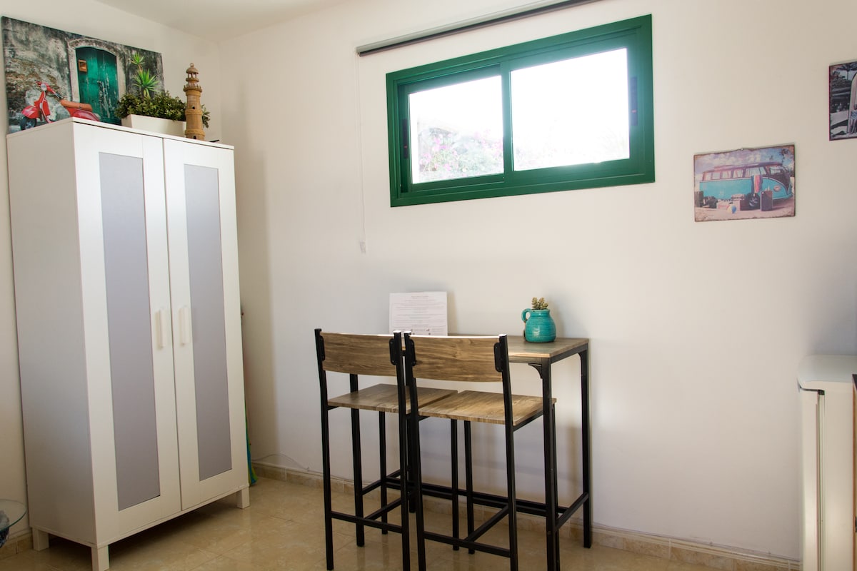 Gemütliches Apartmentstudio, abgetrennte Küche und Bad, Wifi, 7 km zum Northshore, 7km Westküste, 10km Ostküste ! 10 Gehminuten ins Dorf. Cosy Studio for two, seperate kitchen,terrace, Wifi, TV, 10 car min. from the coasts.1km from the centre of the village of Lajares. Owners live on the backside. Quiet area.