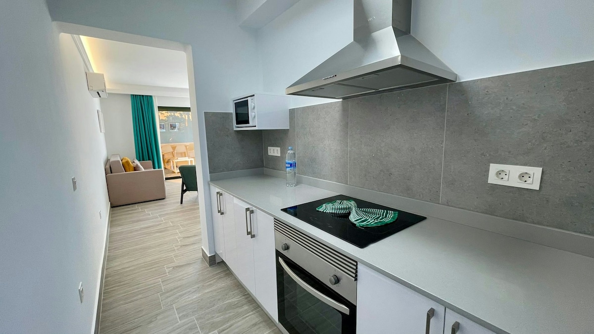 Premium apartment fully renovated in Corralejo, Fuerteventura. Living room-kitchen, 2 XL bedrooms and bathroom. Private Solarium-Terrace with >45 m2 gardens. Noble materiales and fully equipped for your highest comfort. Pool, tennis court and leisure areas in the complex. 100 m to the beach-4 min away to old-fishing village-1 minute to main avenue and malls. Best accommodation standars to relax and enjoy of best beaches of Spain in a singular nature: The booming place to visit.