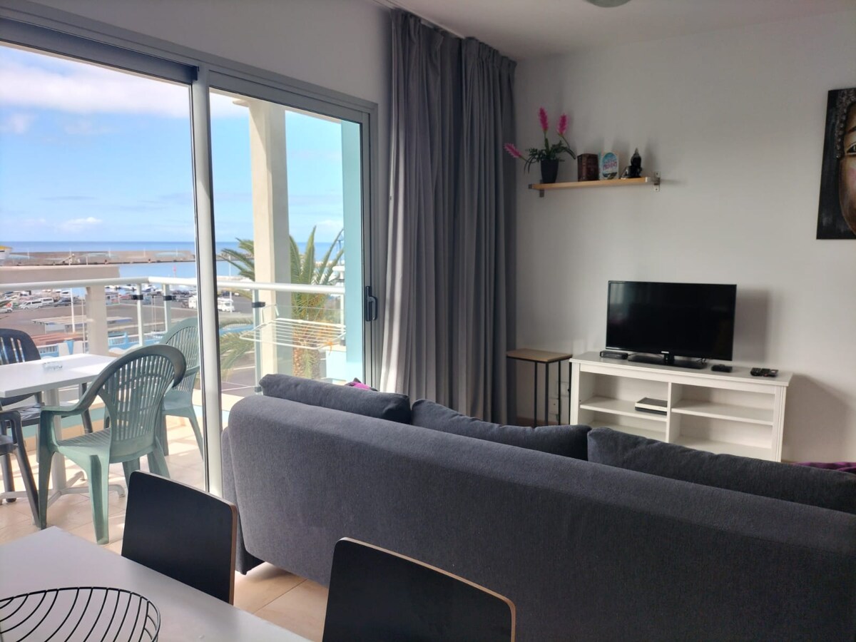 Apartment exclusively for couples with sea view, WIFI, near beaches and in the center of Corralejo. Suite with spacious bedroom with king-size bed and Android TV lcd 32" Spectacular views on both sides, even from the bed, through extensive windows, being able to see the volcanoes and beaches. Full equipped kitchen Included in each stay: Towels: 2 shower towels + 1 sink towel per person Sheets: 1 set of sheets for one week and 2 sets for more than a week Toilet paper: 2 rolls per bathroom