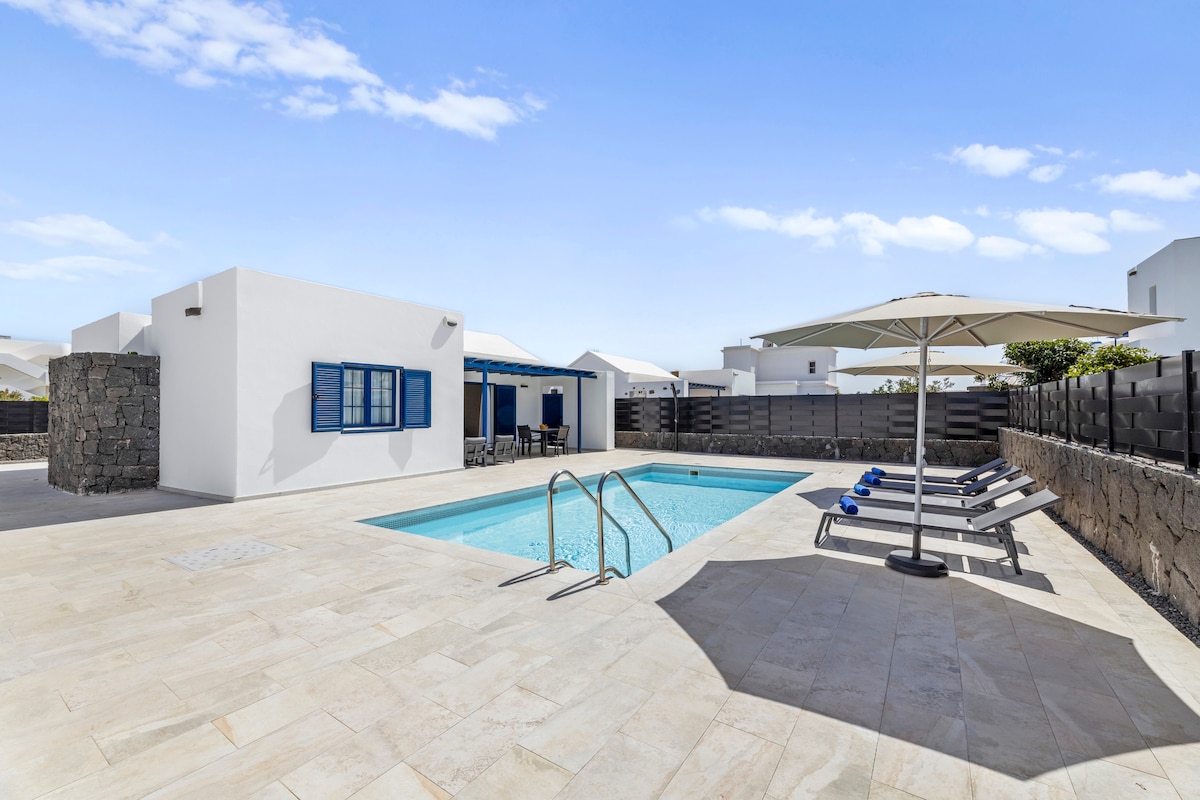 situated in a quiet neighbourhood of lajares , with a volcano in the backyard South facing terrace, The villa consists out of 3 bedrooms and 3 bathrooms Two bedrooms have an en-suite bathroom, and one bedroom with seperate bathroom All bedrooms have direct access to poolterrace satelite television , smart tv , wifi , netflix fully equiped kitchen Outside storage room for sports equipment... heated pool of 10x3 , eco pool treatment with magnesium salts , a real pleasure for skin and eyes