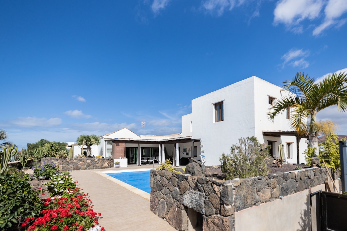 Ubicación ideal para descubrir Fuerteventura, casa completa en lugar tranquilo con enorme jardín de cactus. 2 adultos + 1 niño/a Piscina en exclusiva (pregunta por la opción de calentarla) y aparcamiento privado. No se comparten con nadie más. Villa totalmente equipada primeras marcas. Salón con smartTV. Habitación cama matrimonial Baño con ducha amplia Cocina equipada lavadora, vitro, nevera, microondas Terraza con sombra Piscina Jardín con más de 100 especies Aparcamiento