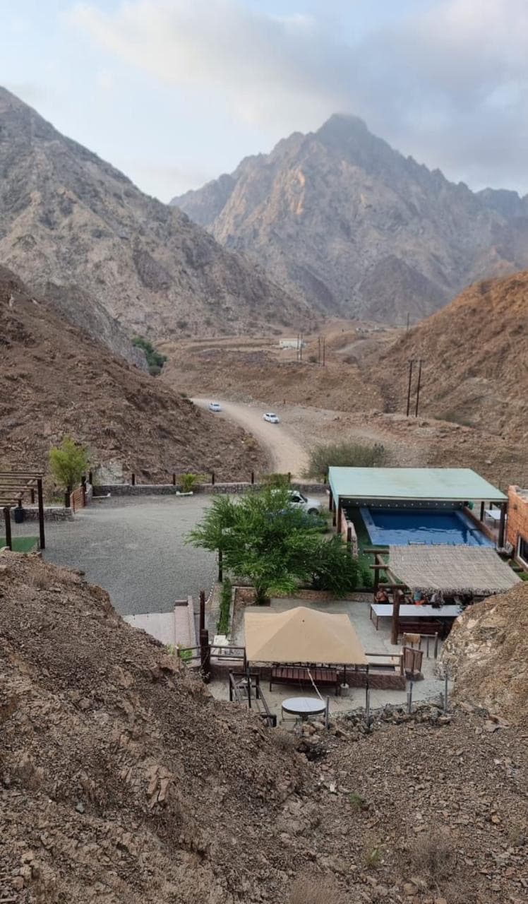 Four bedroom with its pivate pool (not heated) , BBQ and outdoor area with kids games full private farm for families or groups Enjoy trailer experience with hotel amenities viewing Mountain water fall , with outdoor seating areas in the middle of Fujairah mountain