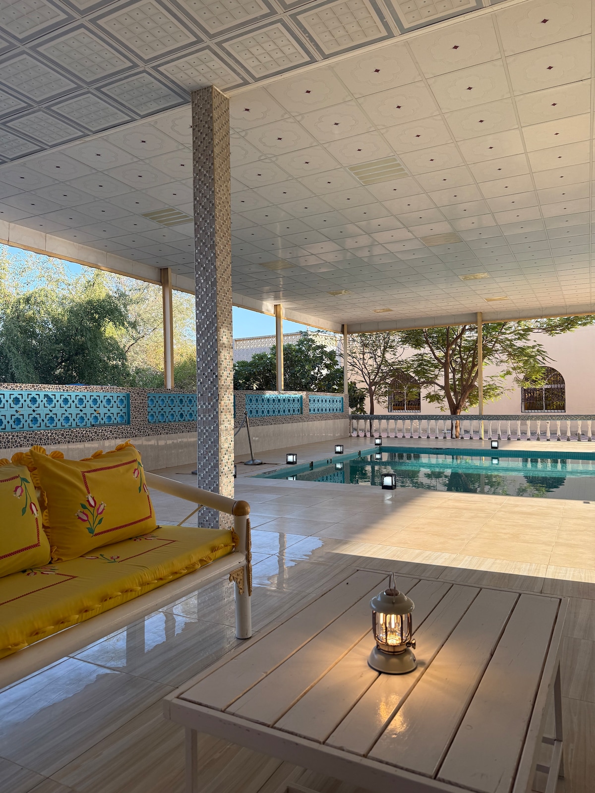 Nestled in a serene mountain village near Hatta, UAE, this traditional rustic farmhouse offers a peaceful escape amid working farmlands and towering peaks. This single-story whole house boasts panoramic mountain views from every angle, ideal for up to 4 guests in two king-bed bedrooms. Relax by the large outdoor pool, BBQ under an Arabian tent, or unwind in one of three cozy seating areas—pure tranquility in the UAE’s rugged beauty.