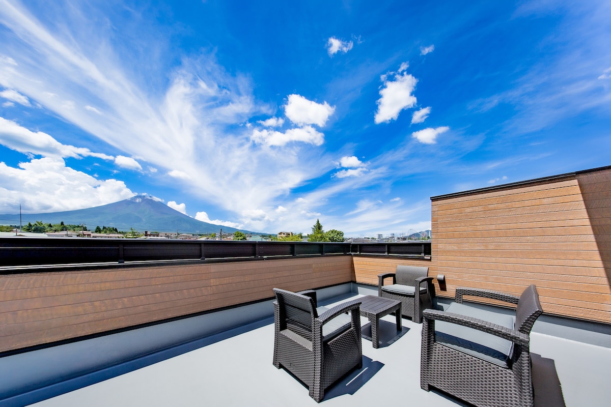 宽敞的房子,配有屋顶烧烤设施,可欣赏富士山美景