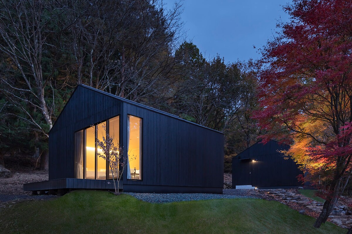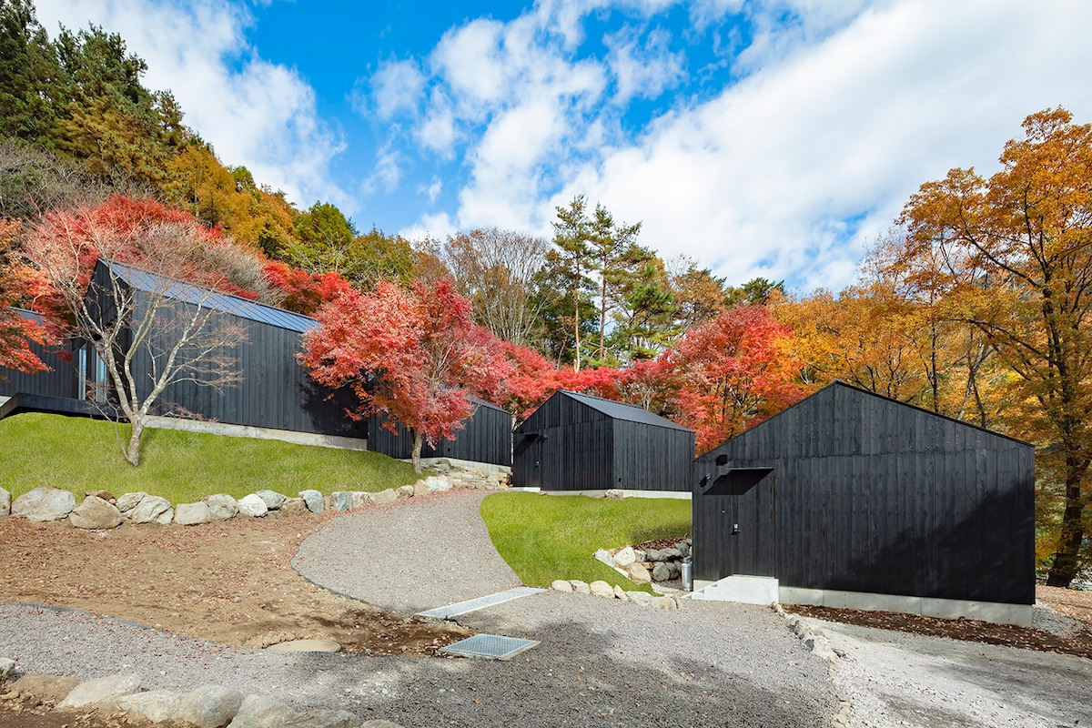 这栋新建的高品质别墅预计将于2025年7月在河口湖畔开业,最多可容纳14位客人。别墅提供精心打造的特别空间,将对细节的考究与富士山的自然风光完美融合。 【精致的住宿体验】 所有提升您住宿体验的电器均为顶级配置。我们精心挑选了Balmuda厨房电器、Vermicular电饭煲和Dyson吹风机等高品质物品。 一楼的客厅配备了4K投影仪、100英寸大屏幕和JBL 7.1.4声道环绕音响系统。您可以在Firestick电视上享受具有震撼画质和音效的最新内容。别墅还连接电脑,是举办训练课程和集训的理想场所。 一楼和二楼均配备55英寸大屏幕,浴室配有按摩浴缸和喷雾桑拿浴室、独立淋浴间和按摩椅,为您提供放松身心的时光。滚筒式洗衣机/烘干机、大型冰箱以及高品质餐具和炊具,让您即使长期入住也能倍感舒适。在雅各布森和弗兰克·劳埃德·赖特设计的间接照明的映衬下,您可以在奢华的空间里放松身心。 【尽情享受自然的奢华空间】 从每层楼的木质露台上,一览无余的自然美景。您可以享受烧烤和篝火晚会,享受非凡的户外体验。