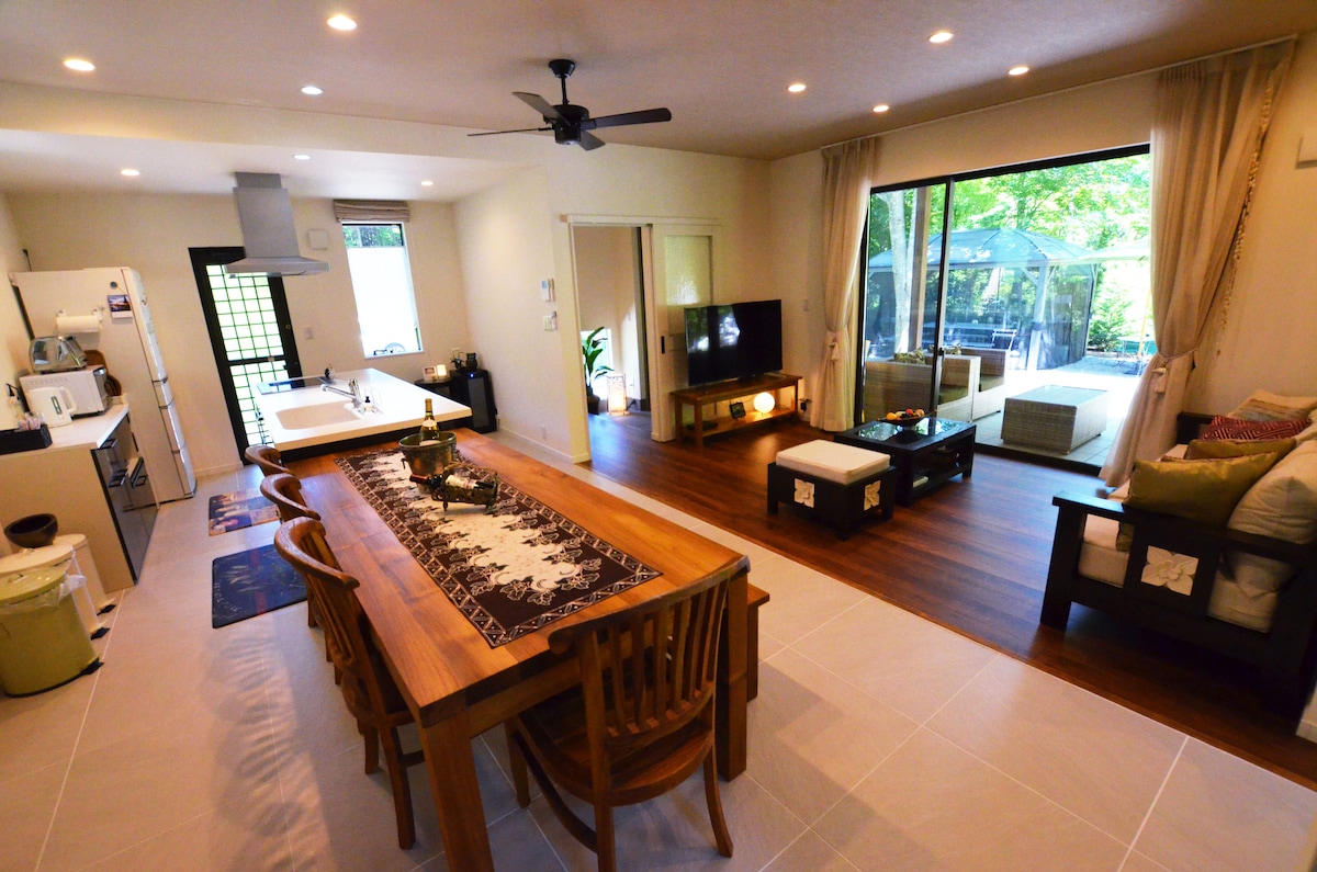 How about staying a luxury 6 bed room villa? Our villa is walkable distance to Michi-no-Eki, Onsen, 7/11, restaurant and park. There is no houses in neighbor and very quiet area so you can enjoy BBQ party or any group event. We also have fire pit place at our beautiful garden! Quiet time is after 10pm. Please not make loud noises or loud music. The villa can occupy 16 people so it's perfect for group traveler and several family with children. We have big bath tub so please relax!