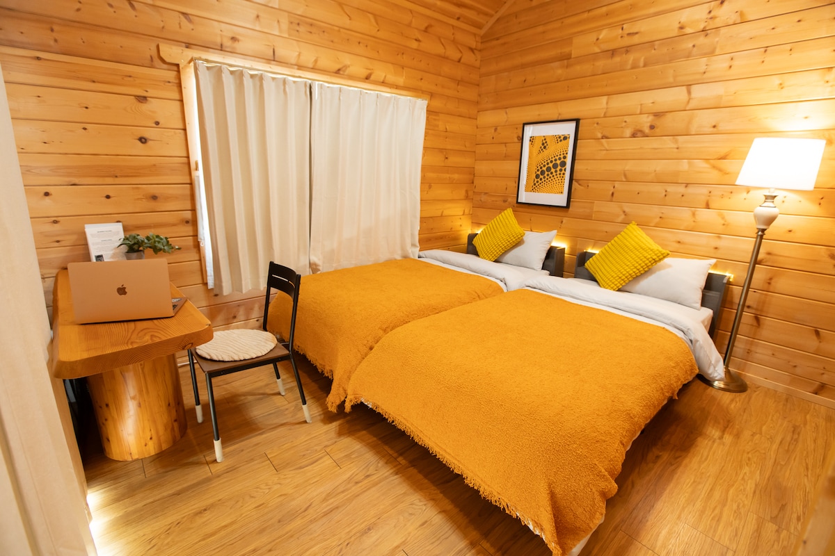 在宁静的庭院中烧烤|带温泉的宽敞木屋|最多住8人|免费停车位|适合开车观光的家庭和团体
