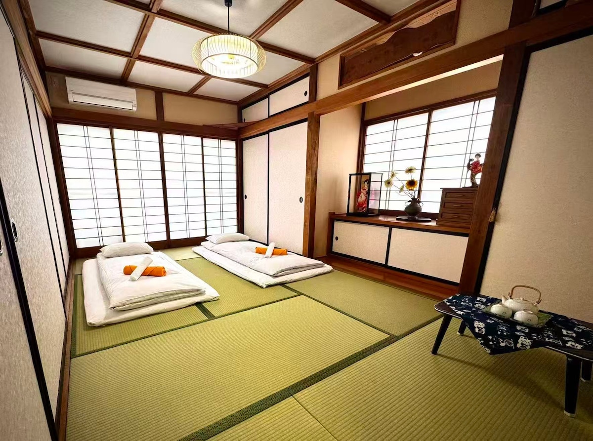 Step into a Taishō-era time slip at this 100-year-old farmhouse near Lake Kawaguchiko! with slight hints of inspiration by Demon Slayer, it features tatami rooms, a mosaic tile shower, vintage icebox fridge, and record player with vinyls. Free bikes make exploring easy, and the private backyard is perfect for relaxing. Tradition, comfort, and a dash of anime magic — all in the shadow of Mt. Fuji. •Kawaguchiko Lake- 9 min 👣 •Supermarket- 20 min 👣 •7/11 - 1 min 👣