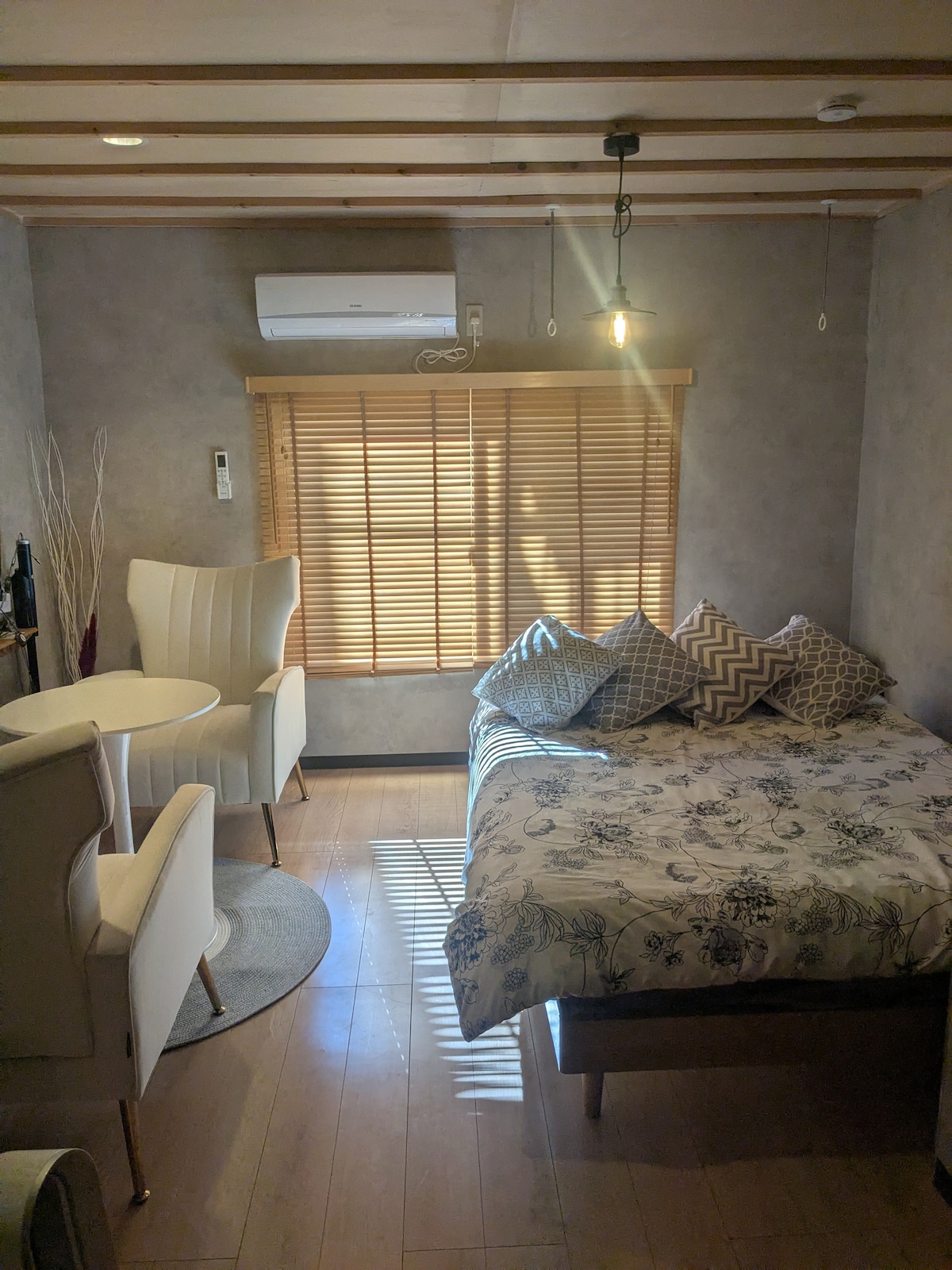 駅近5分の独立ワンルーム!広々お部屋(50平米)でリラックス!無料駐車場、Wi-Fi、