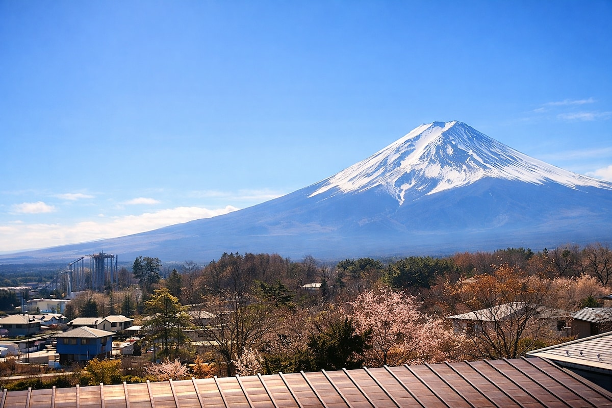 こんにちわ、Mickyです😄 河口湖駅から徒歩10分のアパートメントタイプの宿です。 アパート二階からの富士山の眺めはとても綺麗で、撮影スポットです☺️ コンビニ徒歩3分。 遊園地の富士急ハイランドも1駅でとても好立地。 部屋は私のこだわりで和室は桜柄の壁紙を天井まで張り巡らせました。さらに日本の伝統的な七宝柄や光が当たると金色に輝く壁紙もとても美しいですよ。畳を使った椅子や盆栽などのインテリアもあり、日本の【和】空間を存分に楽しんでいただけます。 部屋は4人まで宿泊可能です。 お子様用の食器や枕も準備しています。 ベッドは2メートルのとても大きなサイズで(2人)、畳にお布団を敷いて寝ることも可能(1人)。さらにおしゃれなソファをベッドにすることも可能。 日本の魅力を詰め込んだ室内と日本が誇る富士山を存分にお楽しみくださいね! ありがとう ※予約後、専用のシャワールームを案内します。また、シャワールームへ行くのに一度部屋の外に出て、隣の部屋へ移動する必要があります。少しだけ共用の廊下を通りますが、ほとんど他のゲストと顔を合わせることはないので、安心してください