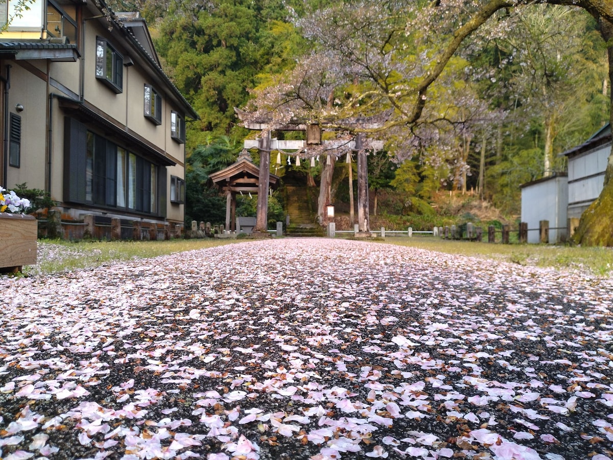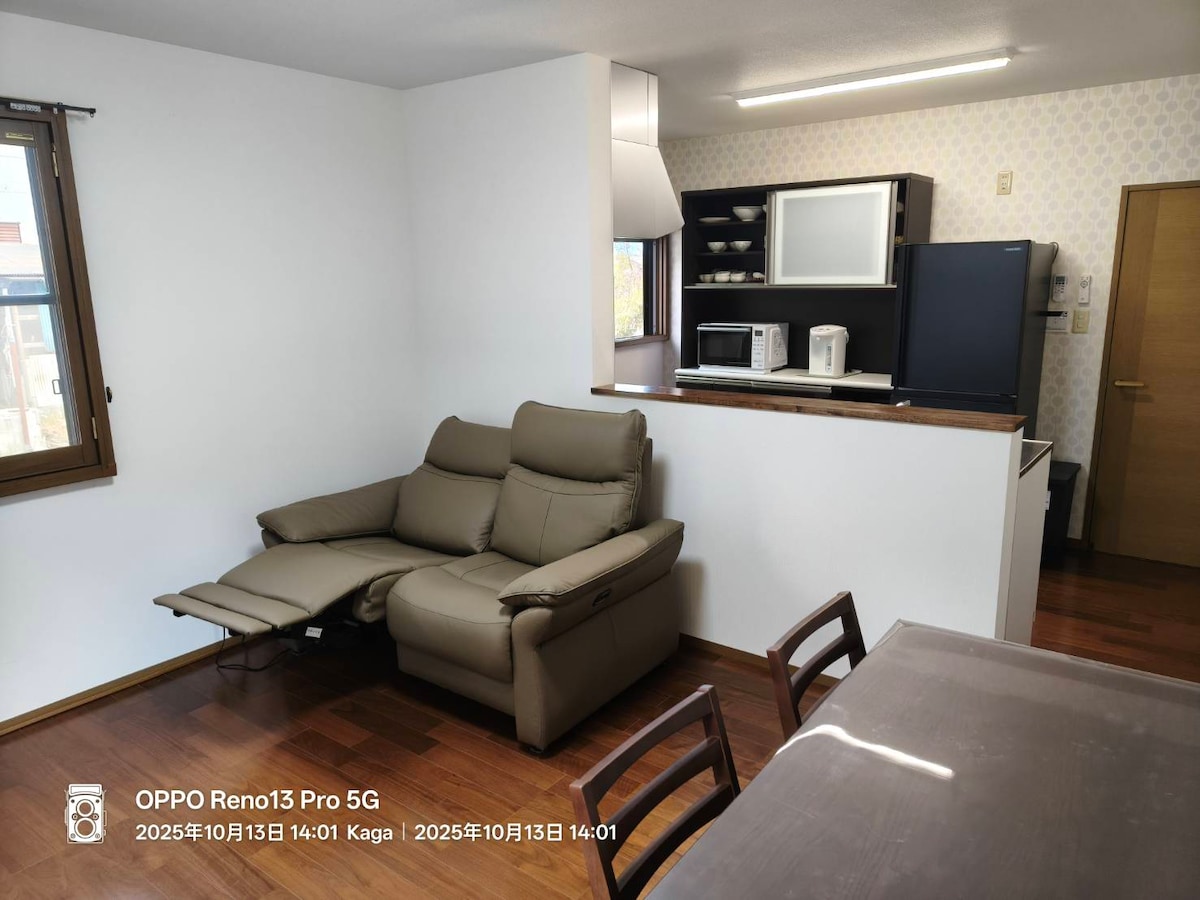 可携带宠物。宽敞的古民宅整栋出租。柴火炉。滑雪场就在附近。最多可容纳10人。距离金泽50分钟。还有温泉。