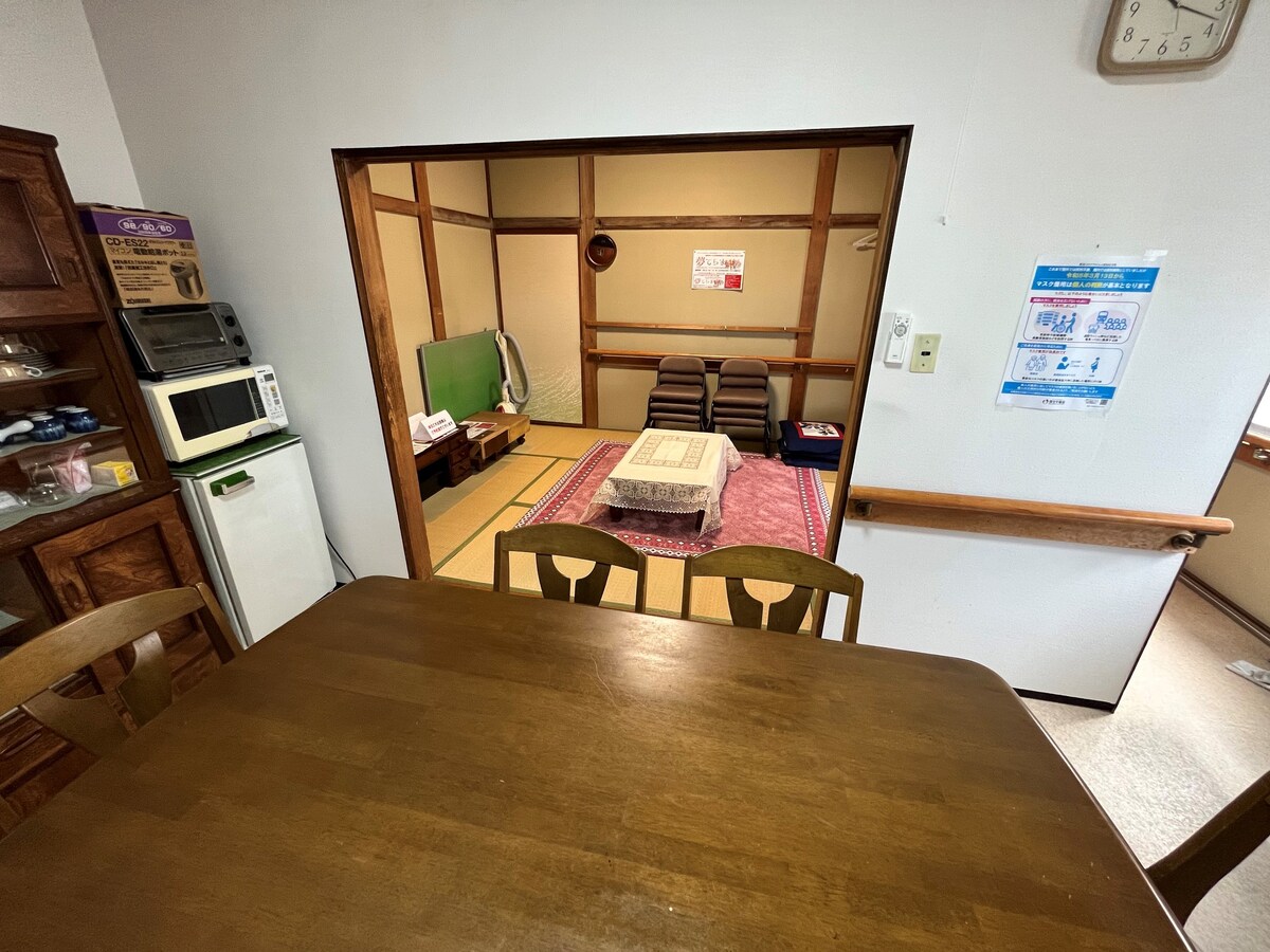 ここ「はたば」は、かつて実家で機織り工場(=はたば)として使われていた建物をDIYでリノベーションした、1組限定の宿です。梁のあるリビング・ダイニングと、落ち着いた和室のある空間は、静かな山あいの自然に囲まれ、グループ旅行や海外からのお客様にもご好評いただいています。 宿はまるごと貸切で、他のお客様と顔を合わせることはなく、お風呂やトイレ、キッチンもすべて専用。プライベートな滞在を心ゆくまでお楽しみいただけます。 敷地内の別棟にはホスト(Ken)または家族が常駐しており、何かあった際にはサポートできる体制を整えておりますので、はじめての場所でも安心してお過ごしいただけます。 また、ホストのKenが在宅の場合には、よろしければ一緒にお酒を飲んだり、地元の話をしたりといった交流も可能です。 ⚠️ご注意 周囲は自然豊かで、虫やカエルの鳴き声、猫などが気になる方はご遠慮ください。 室内は手作りの床を活かしており、ささくれや小さな穴、割れがあります。スリッパをご用意しておりますが、気になる方はご遠慮ください。 貸切ではありますが 立入禁止エリア(二階や布団部屋もございますのでご注意ください。