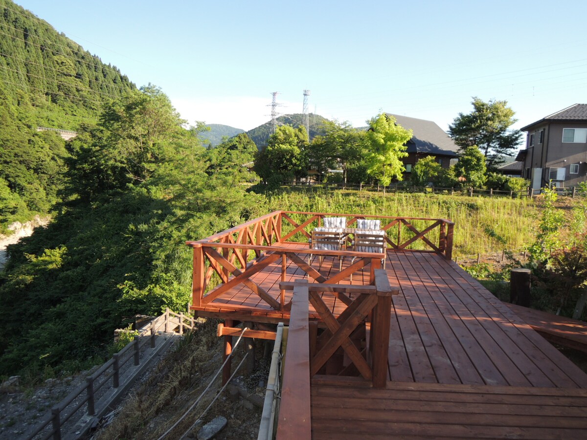 【あらかじめお伝えしたいこと】 こんにちはホストの塚本です。さくら荘は休日を静かにのんびりと過ごしたいゲストさんにお越し頂きたいと考えています。パーティーなど騒ぎたいゲストさんはお断りすることもございます。マナーとルールを守って頂けるゲストさんのみ歓迎いたします。 【施設の説明】 1棟まるまる貸しで5名様まで料金は一律です。(6名様以降は1名様につき+1850円布団やタオルの追加を必要としない未就学児は人数に含めなくてOKです)高速Wi-Fiあります。間取りは3LDK、野外ではBBQを楽しめます。(BBQ用の食材や炭、コンロ等機材はお持ち頂く必要があります) ウッドデッキにでるとブランコがあります。 リビングにはハンモックが1台あります。 そして窓からはどこからも池田町の大自然が見え、川のせせらぎや鳥のさえずりが聞こえます。恐竜博物館や永平寺への中継地点としても便利です。 【川遊び】 さくら荘の裏には足羽川が流れており夏には地元の子ども達が川遊びにくる隠れた遊び場です。歩いて行けます。 【温泉】 車を5分走らせると冠荘という温泉施設があります。サウナもあり地元民や観光客の憩いの場です。