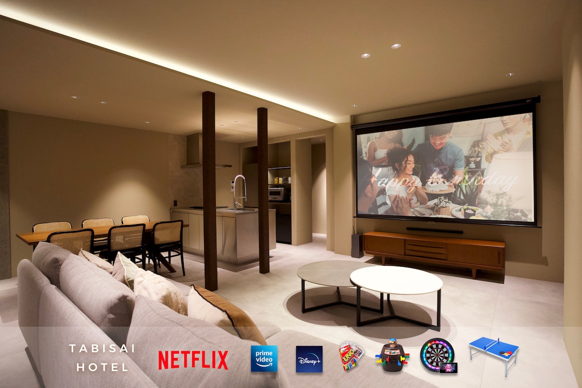 【2026年2月 NEW OPEN】福岡最大級の贅沢な広さ一棟貸切ホテル/最大22名/浴室/大画面