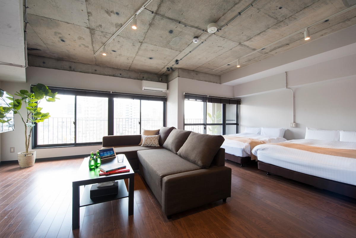 [Convenient Location and New Apartment] 8 mins walk from Hakata station (Metro & JR). 15 mins taxi ride directly from/to Airport. Easy access to all parts of Kyushu. Good access to not only Hakata Station, but also to the large bus terminal. Newly built apartment in 2024, equipped with the latest facilities. Please enjoy Hakata life with your family and friends! [Family are welcome] Equipped with sofa, dinning table and kitchen, ideal for a family trip. Wide beds are ideal for big groups.