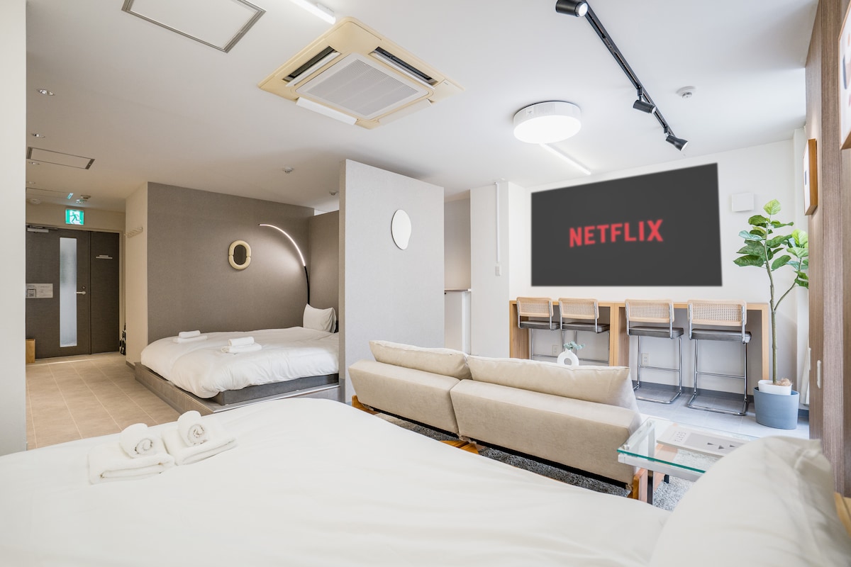 「靠近车站」步行5分钟!最多可入住8人!宽敞的单间公寓!配备投影仪!