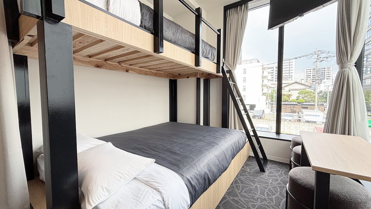 距离博多站筑紫口6分钟步行距离。将公寓的一间房改建为酒店。1张双人床,面积24平方米