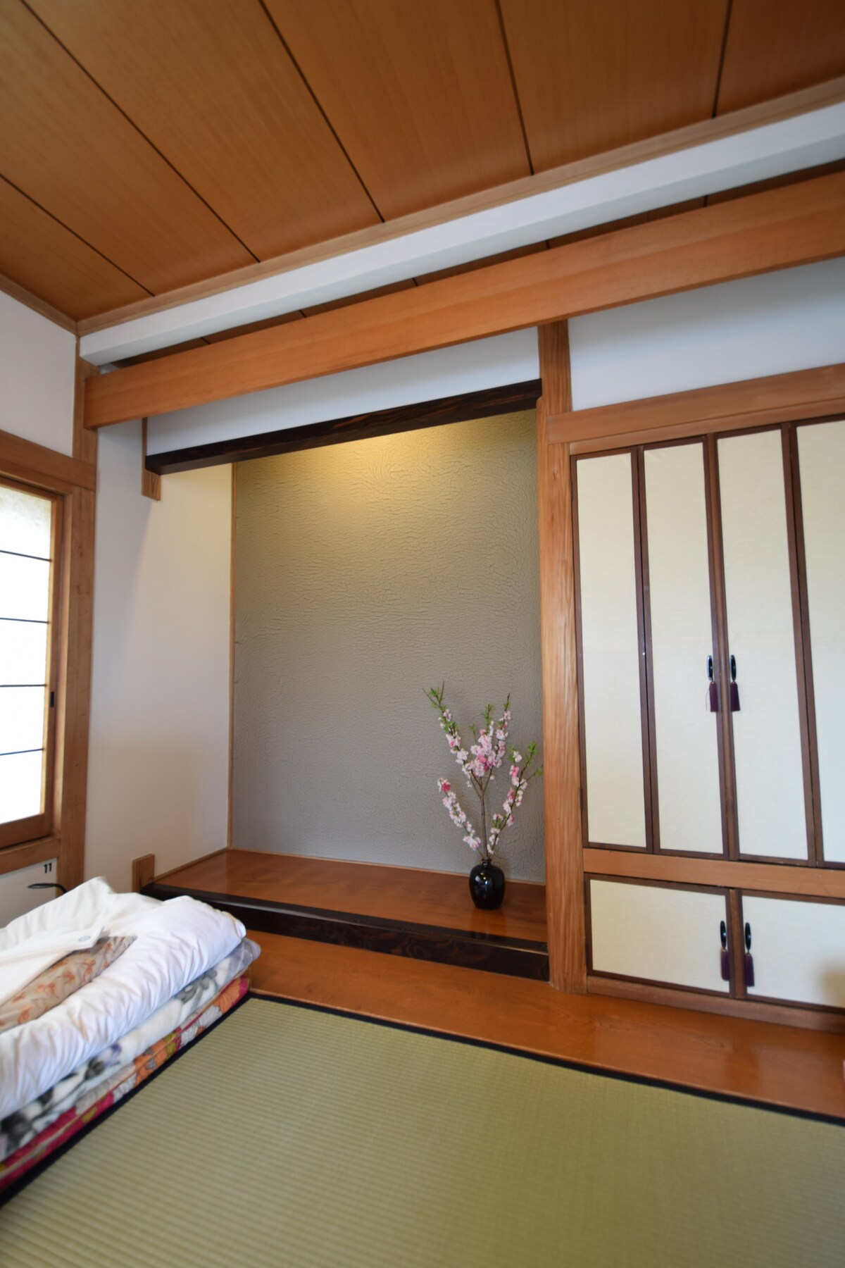 - This room features tatami (woven-straw) flooring and a double-size Japanese futon mattress. -Comes with an en suite bathroom and toiletries (bodysoap, 2-in-1 Shampoo and bath towels equipped). A mirror,a TV, a hairdryer are provided. - Wifi internet access available.
