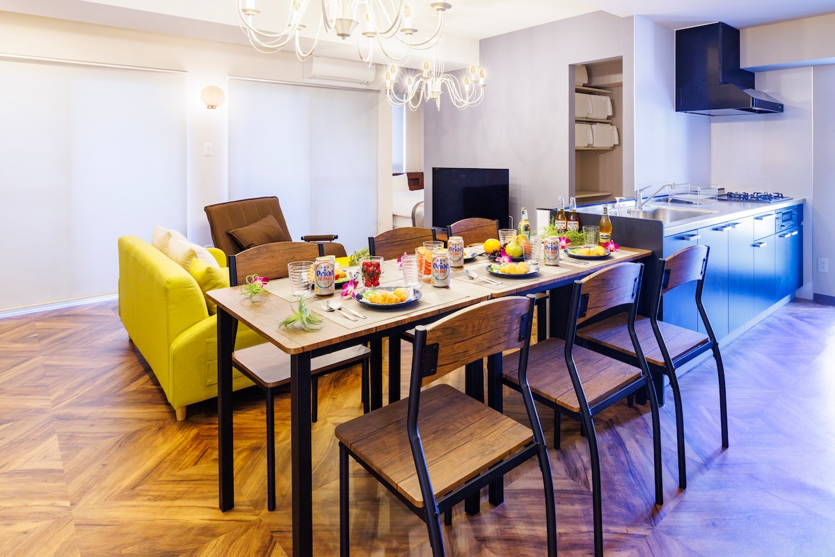 机场乘坐单轨列车仅需10分钟 无需租车! 您入住期间,我们提供2辆免费自行车供您使用! *成人票价从 3 岁起。 舒适入住人数为3位! 我们提供特大号床,可以让孩子与您共睡! 这样最多可容纳4位入住。 ~ 请不要超过4位成人入住,以确保舒适的居住环境 ~ 适合在国际通购物后只需要休息的计划! 便利店步行1分钟 周边餐厅众多 步行3分钟即可到达购物中心Pallet Kumoji 非常方便购买食品和日用品, 即使长期居住也非常安心! ~ 请使用附近的投币停车场~ ※ NPC 24H Riubou Kumoji停车场 Ryukyu Shimpo Hall Asahibashi 步行1分钟 ※ 还有许多其他停车场可供选择! 提供Wi-Fi!非常适合远程办公 * ・备有适用于远程办公的桌椅! 配备55英寸电视 ・可观看Netflix、Youtube等! 舒适的法式高级床垫,确保您的良好睡眠 配备丰富的设施(无需携带行李入住) ・燃气灶、电子锅、电饭煲等 靠近国际通,非常方便作为那霸市观光的基地! 如有其他问题或需要进一步协助,请随时告诉我。