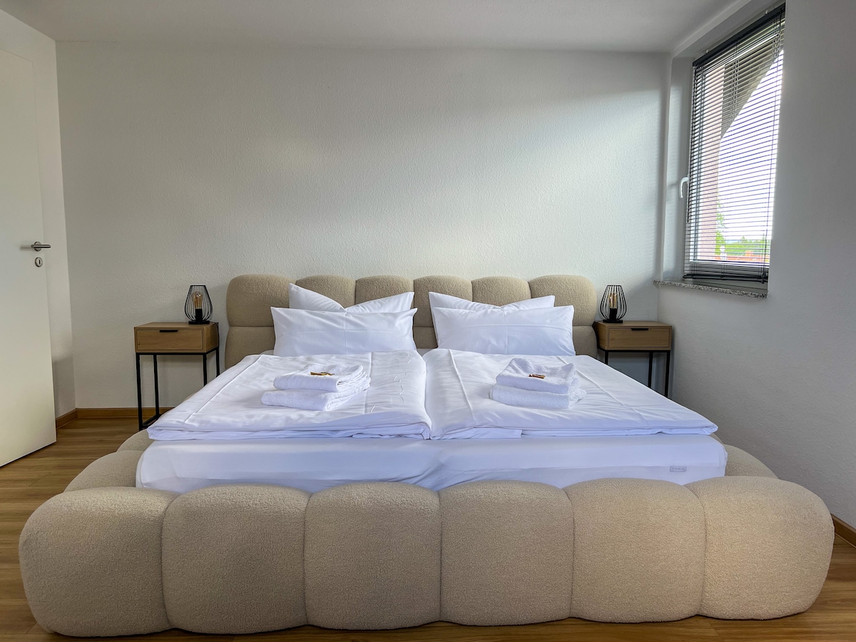 Diese traumhafte 2-Zimmer Wohnung besticht nicht nur durch einen großzügigen und praktischen Grundriss, sondern einer großen überdachten Terrasse. Hauseingang und Außenbereich sind barrierefrei gestaltet. Bei der komplett neuen Ausstattung wurde Wert auf höchste Qualität gelegt: Hochwertigste LED-Beleuchtung, sämtliche Fenster-Rollläden elektrisch, in jedem Raum Fußbodenheizung. Eine Top Moderne Küche. 2 LED-Flach-Fernseher (Smart-TV, 55 und 65-Zoll) 2 Boxspringbetten, 1 Schlaf-Sofa.