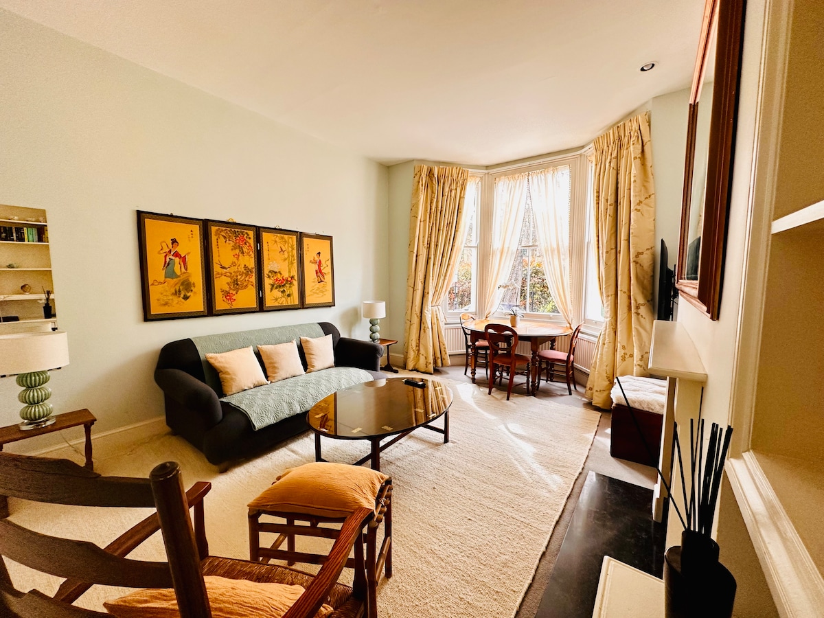 Stunning studio located on the First Floor of this impressive Victorian House on a tree lined street adjacent to Kensington Palace. The studio has been recently refurbished with a brand new bathroom and redecorated. There is a double bed in the studio room and a sofa bed. The studio benefits from a terrace to the front overlooking the tree lined street. Please do let us know if you would like the second bed set up.