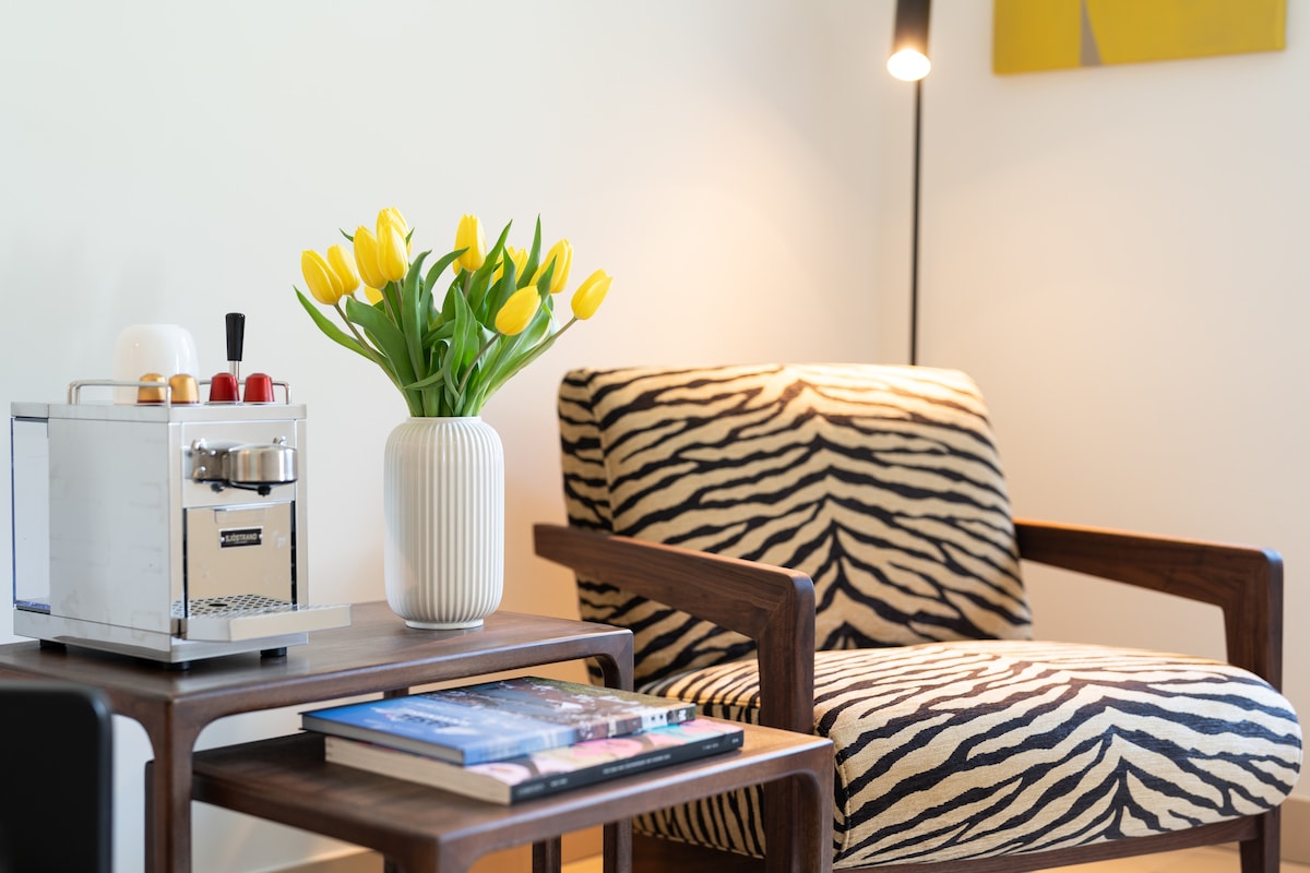 Welcome to L'Atelier – a stylish retreat in the artsy city of Basel. Built in 1957, the house is located on the property of the owning family and combines history with modern design. Through a separate entrance, you enter a lovingly designed studio with high-quality, handpicked materials. Art, indirect lighting, and a touch of Basel make this place unique – just as the owner herself would want to live in a foreign city.