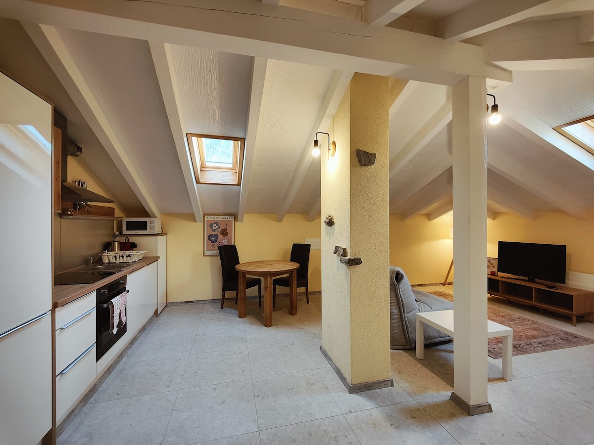 Bienvenue dans notre magnifique et spacieux loft sous combles au pied de la forêt dans une maison des années 30 entièrement rénovée. Le plaisir de cuisiner face au Chavalard et de se prélasser face à la Pierre à Voie. Profitez d'une atmosphère chaleureuse et cosy, dépourvu de télévision. L'accès est facile à de nombreuses balades estivales et aux pistes de ski et de randonnées en hiver. L'emplacement idéal pour une escapade alliant confort, charme vintage et aventures en plein air.