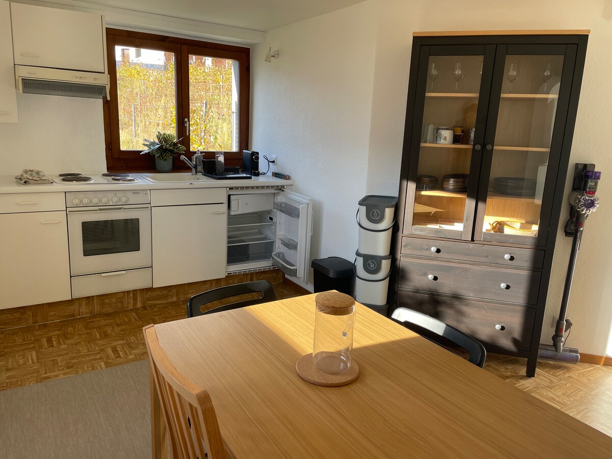 Chambre indépendante avec lit 2x matelas 90x200 2 x duvets | Studio petite kitchenette avec plaque de cuisson et micro-onde. La salle de douche/WC , refait en 2021. Entrée indépendante et terrasse à l'entrée pour les voyageurs, grill. Studio équipé d’une machine à café avec capsule à dispo. Bouilloire avec thé, épices basique et huile pour cuisiner disponible. frigidaire . À disposition également un caquelon à fondue et un appareil à raclonette. Pour les motards, local fermé pour les motos.