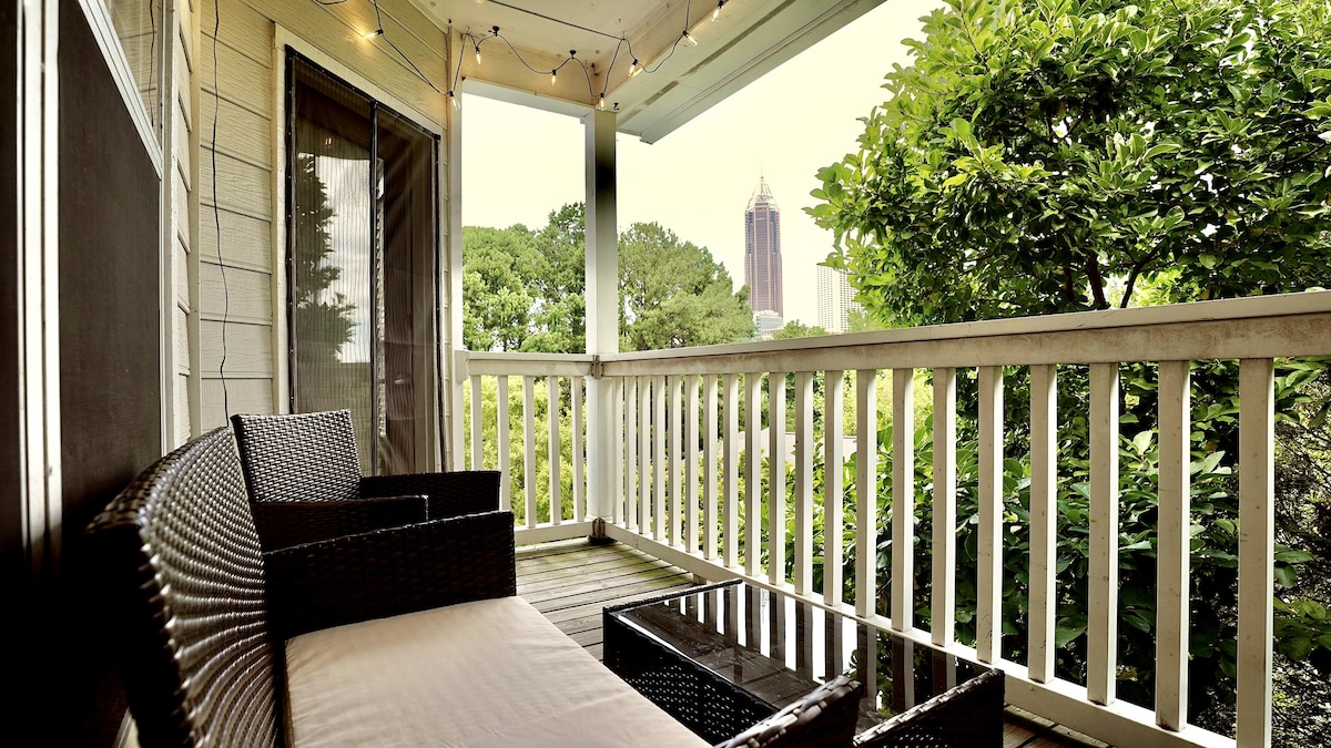 1250 sq ft loft, walk to the best attractions, dining & nightlife that Atlanta has to offer -Best location in Atlanta -Steps from the Beltline Path -Dedicated workspace -Netflix/Hulu/Amazon Fire TV -W/D in unit -Free Bike -Sizable patio on private greenspace -Free covered parking -Walkscore® : 93 "Walker's Paradise" -15 min to Atl Airport -10 min to Mercedes Benz Stadium ✭ "I loved the space. Felt right at home. Beautiful surroundings and very quiet but still right in the mix of everything."