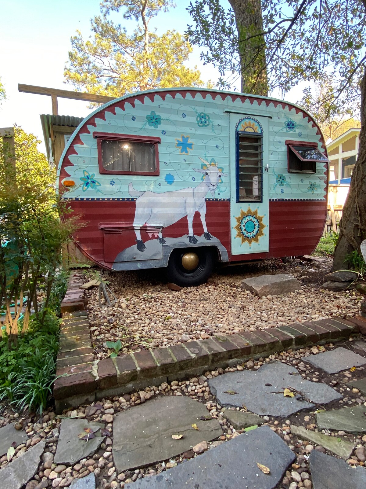 Unabashedly whimsical, this vintage camper (circa 1957!) has been recently transformed to inspire and delight her guests. "Eliza J" welcomes you with her benign smile into a colorful and cozy world where you can create a respite like no other. Enjoy the gorgeous gardens (harvesting fruits and veggies encouraged!), languish by a bonfire or in your hammock, venture out on the Atlanta Beltline or simply hang out in Grant Park, across the street...your choice are limitless!