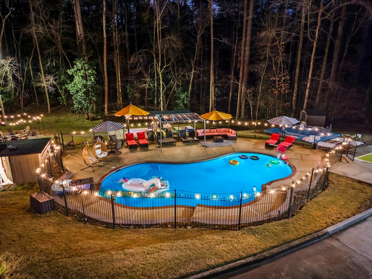 豪华亚特兰大庄园泳池/热水浴缸/桑拿/匹克球/游戏室