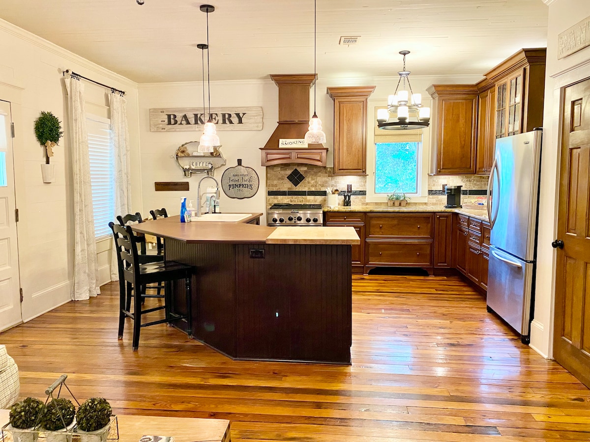 Step back in time in this historical 100-year-old shoppe. The residence combines its original charms with modern luxury, featuring plank flooring, boutique furnishings and decor, covered porches, and views of the surrounding greenery. There is a wonderful back porch with ceiling fan, swing, rocker!!!! Sit and enjoy the view. We live locally and will be available for any issues or special request we can assist with The property is located 5 miles off of I-75, with convenient access to the Atlanta Motor Speedway, Hartsville International Airport, and the new Mercedes-Benz Stadium. 23 miles from Atlanta Motor Speedway, Hampton, GA 5 miles from the famous Southern Belle Farms Just across street from Kelleytown Park Located in one of the most desirable areas of Henry County. Car necessary. Parking available near General Store on property Just step back in time. This is an “original” General Store. It’s sits on 5 acres. There is a farmhouse next door on the same property. KrogerGrocery Store just 5 miles. Local fruit and vegetable stand less than 1 mile. Kelleytown Park less than one mile. Brand new, clean park with firehouse. Just come relax in a clean quiet country setting. King bed very comfortable. Sleep Innovation Pillows, 3” foam gel mattress pad All bedding and pillows in bed sacks! Pottery Barn Queen sleeper sofa. Large closet in master can hold play pin for infants and toddlers. Can also provide car seat and stroller We are located in a country setting, but 7 miles from Southern Belle Farm. A must to visit if in the McDonough area 26 miles from Hartsville International Airport. 27 miles from Mercedes-Benz Stadium Enjoy everything Atlanta has to offer including the beauty of its suburbs and all it has to offer for families, couples, weekends getaways!