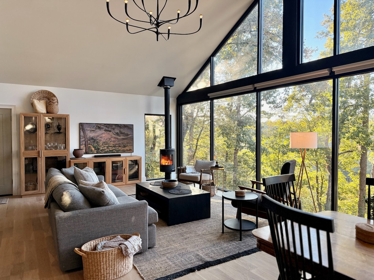 This unique and peaceful stained-glass chapel next to a creek will make you feel like you're staying in an enchanted forest right in the heart of Alpharetta. Recline in the hot tub or relax around the firepit before taking a short stroll across our tree bridge. Escape the Atlanta heat by reclining in the soaking tub or lounging on the comfortable bed under a cedar shingle ceiling. Newly built in August 2022, this space was dreamed, designed and built with the ultimate guest experience in mind.
