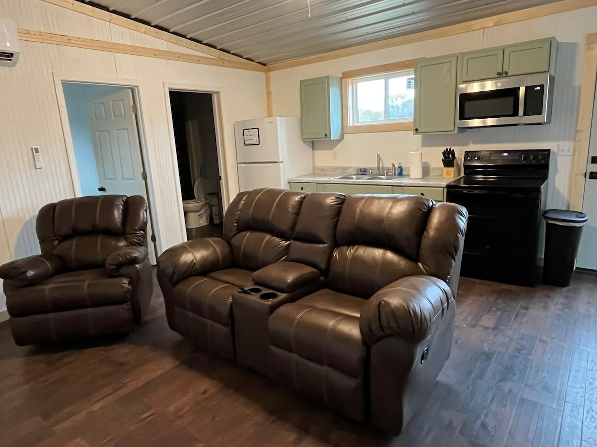 Located in the small town of Clinton KY this Tiny home is located right on the Scenic Trail of Tears, and only 15 mins away from Columbus State Park and only 30 mins to Union City, TN or Paducah, KY. For those who want adventure Area 252 Riding Park is only 20 minutes away. Looking for something quiet and tranquil but still a short drive to all the fun things this is the place. Two bedrooms, master being a queen size bed and guest is a full size bed, one bathroom, kitchen and living area.