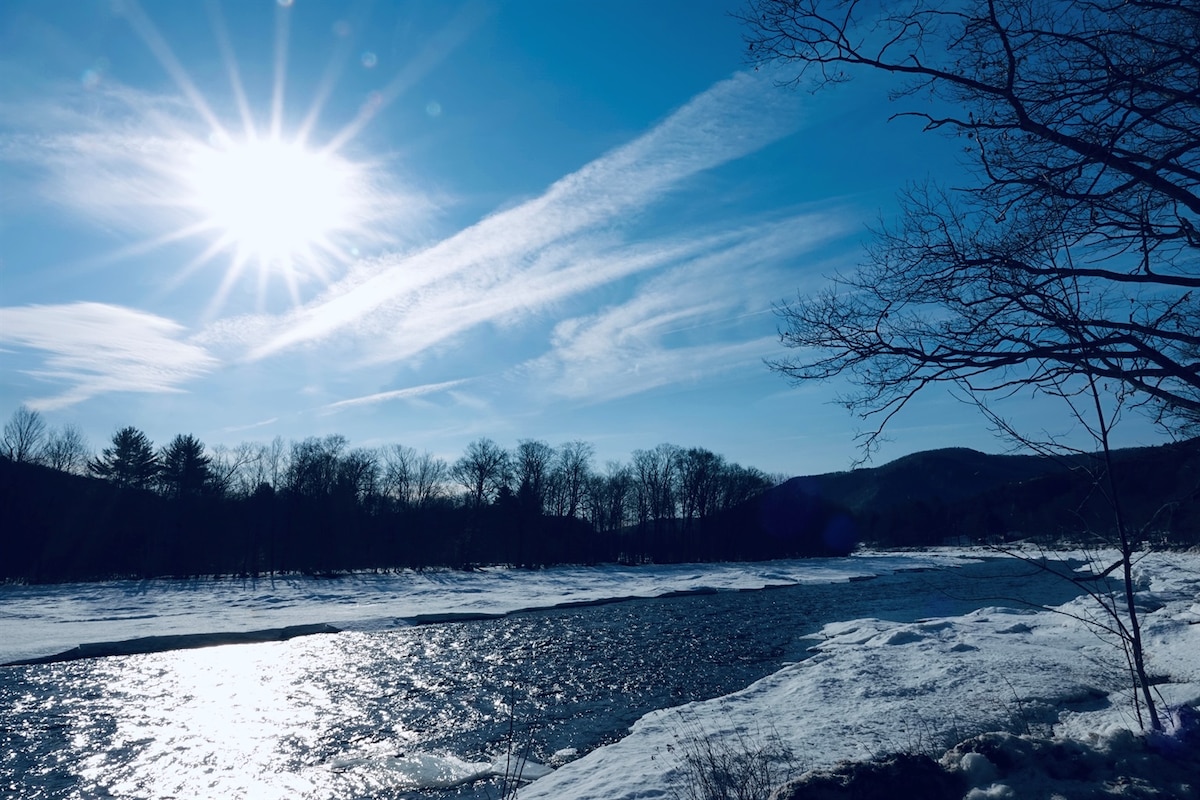 This is the place for a wonderful, relaxing retreat. You’ll be pleasantly surprised when you open the door to your stay. It’s beautiful Adirondack decor is very welcoming and you will be very impressed with the sparkling cleanliness of this stay. Relax and enjoy all the comforts of home with WIFI, ATT and Verizon cell service. We have a full house generator, mini split for air conditioning, deck area, a grill, and an area with a fire pit all with the river and mountain view’s. Boat parking!