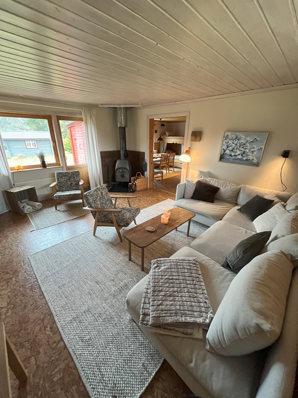 Braskamin och 8 sängplatser.
