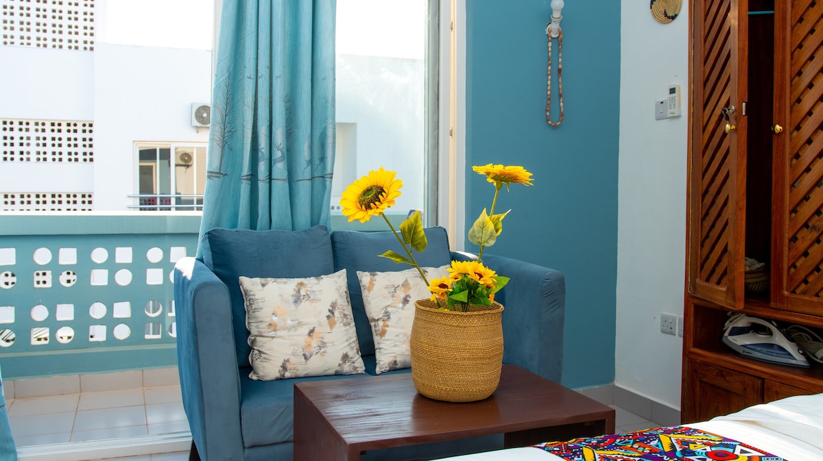 A meticulously designed, ground floor, one bed apartment with style and comfort in mind. Adorned with local hand crafted furniture and bathed in natural light, its turquoise accents offers a serene ambience that complements its breathtaking location overlooking the majestic Indian Ocean. The property boasts a fantastic location; 5 mins from airport, 10 mins to Stone Town. Whether you are on a family holiday, a honeymoon, or with friends, The Cliff @ Mazzini, is a true home away from home.