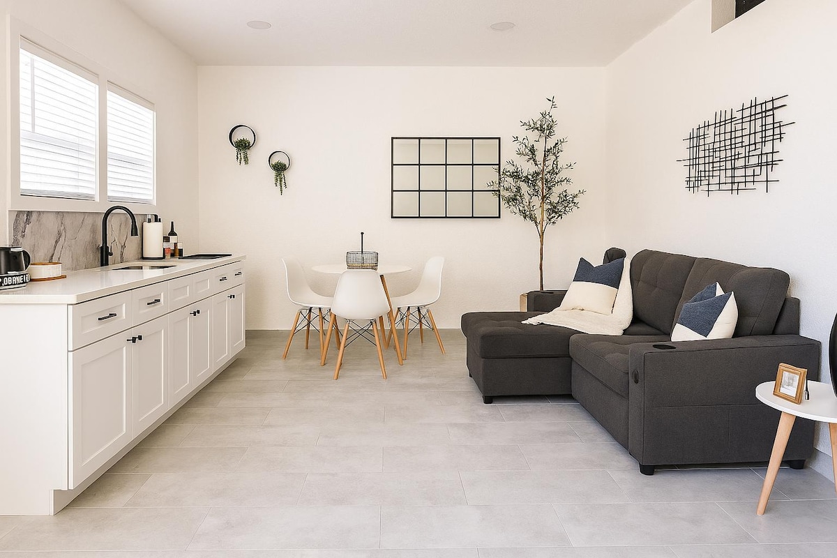Welcome to your comfortable and modern 1-bedroom guesthouse in a prime Orlando location! Just minutes from Universal, Disney, Epic Universe & local dining. Enjoy a full kitchen, cozy living space, and stylish design — perfect for couples, solo travelers, or small families. Relax after the parks or explore Orlando’s top attractions with ease. Your home away from home awaits!