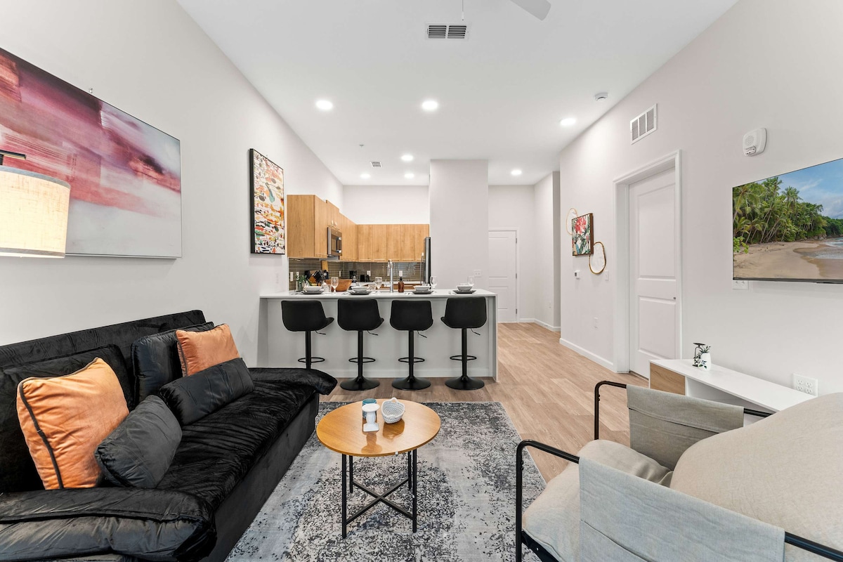 Enjoy a stylish experience at this centrally-located rooftop terrace. Located at the Enclave Suites, this unit features a rooftop terrace with views overlooking Sandy Lake. Recently remodeled, it boasts practical functionality with beautiful design. This unit is everything you need to enjoy a vacation in Orlando. It is centrally located off of International Drive and minutes from Universal Studios, Volcano Bay, SeaWorld, Disney World and much more. Enjoy a luxurious stay without the hefty price.