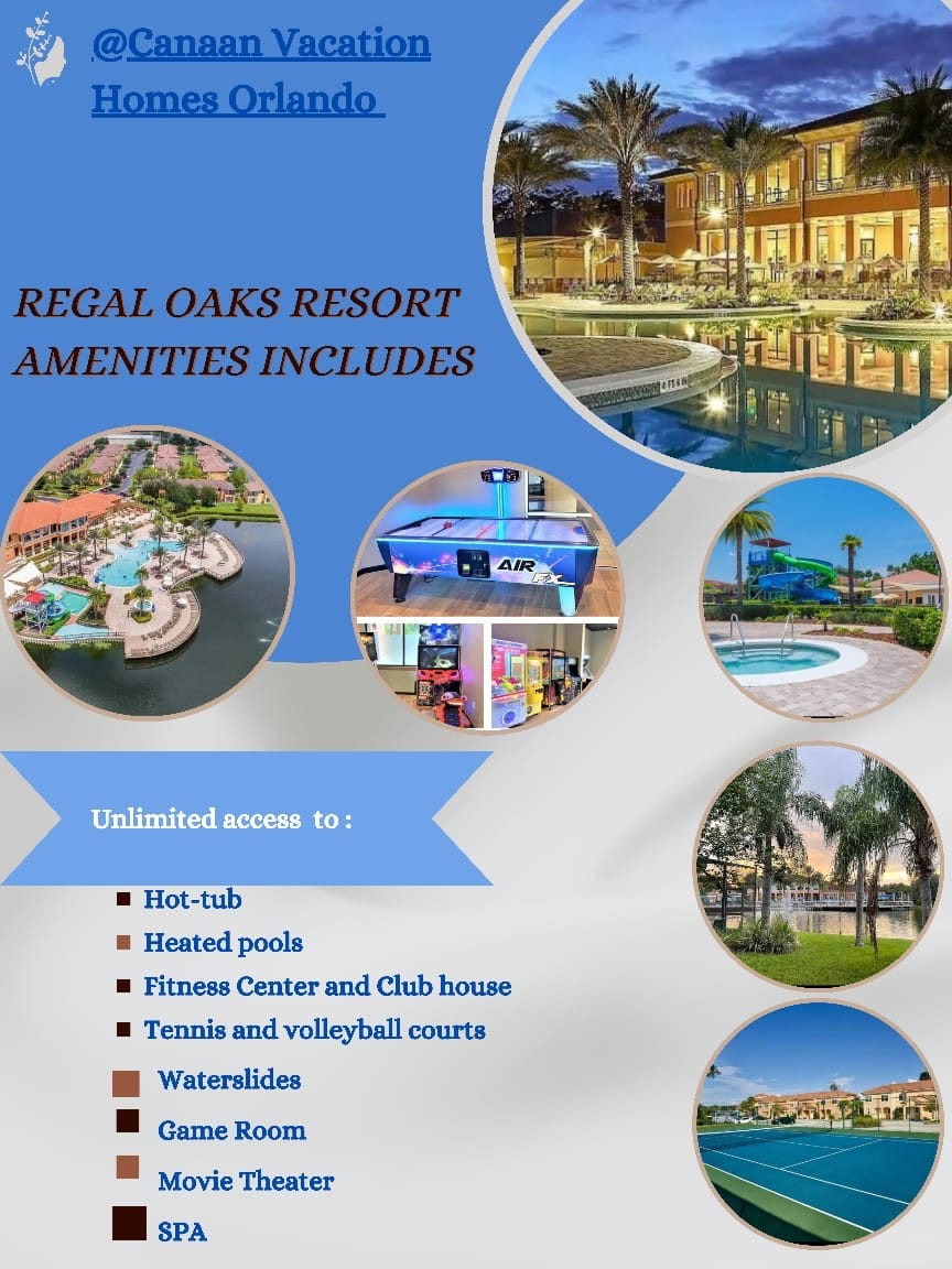 Escape to this relaxing 2-bedroom townhouse in the gated Regal Oaks Resort, just 15 minutes from Disney! Enjoy your own private hot tub overlooking a peaceful lake, unwind after park days, and take advantage of resort-style amenities like pools, water slides, a fitness center, and a kids' club. Whether you're planning a family vacation, couples’ getaway, or multigenerational trip, this home offers the perfect mix of comfort, convenience, and fun.