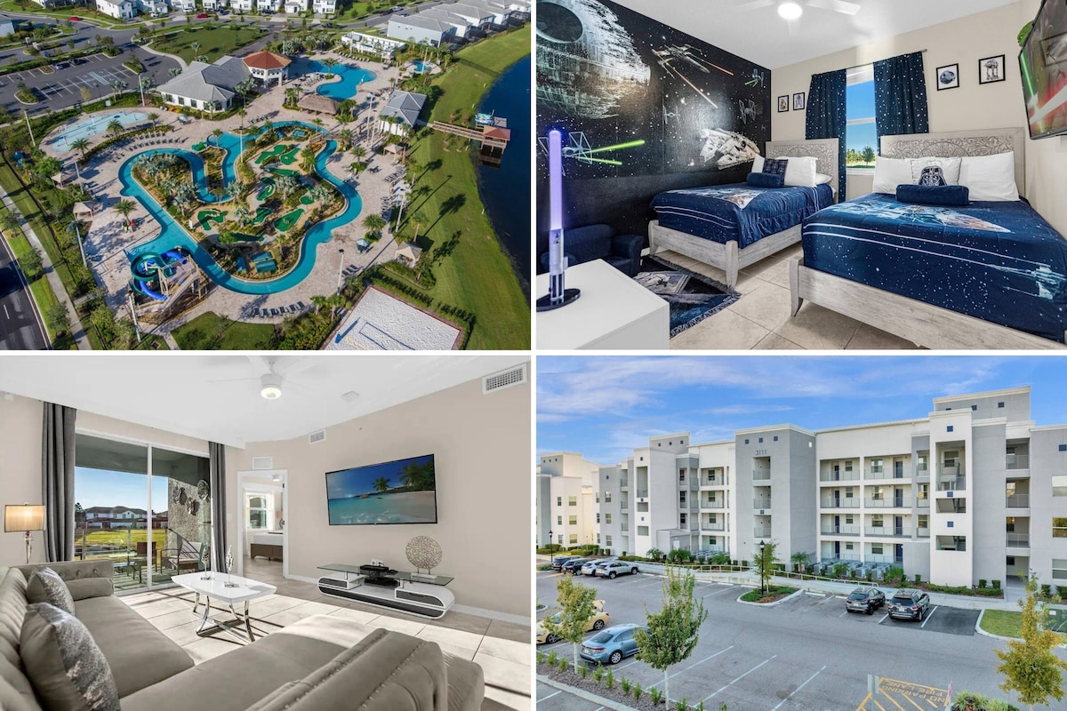*湖景*度假村,距离迪士尼4分钟!私人水疗中心,无线网络