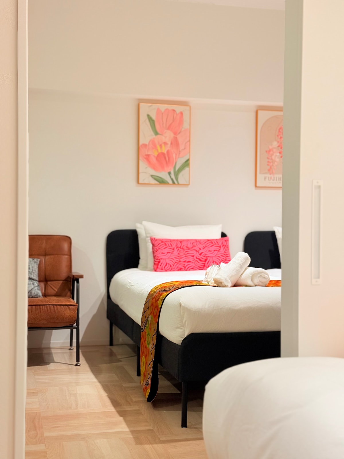Opened 2025! Enjoy a fully renovated Japanese-modern designed house featuring a tatami tea room and art gallery. *ultra-fast Wi-Fi. *very quiet This spacious 4-bedroom house has a full kitchen, a large living and dining area, two TOTO toilets, two washers, one shower, and a tub with a drying room. Two queen-sized beds, one single bed, and a tatami room/w a futon set. nearby stations: 1. Keikyu Heiwajima – direct access from Haneda 2. JR Omori –2 stops to Shinagawa, direct to Tokyo Station.