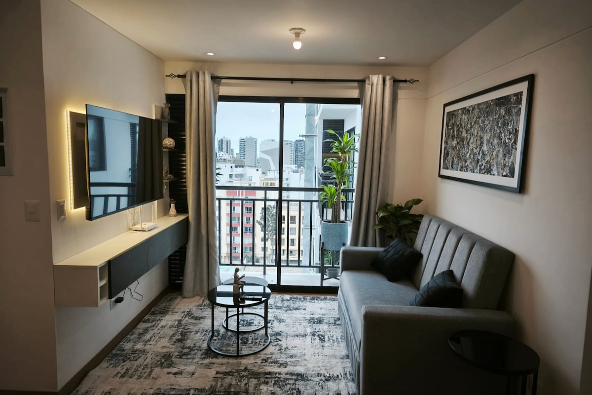Departamento de estreno completo totalmente equipado que esta ubicado en una zona estratégica de avenida principal en Lima, Perú. Con áreas comunes en el edificio para que hagan de tu estancia una experiencia única. Está creado con la intención de ofrecer un espacio cálido y acogedor a mis huéspedes, además de unas vistas panorámicas excepcionales que te permitirán disfrutar de las puestas de sol y de la belleza de la ciudad.
