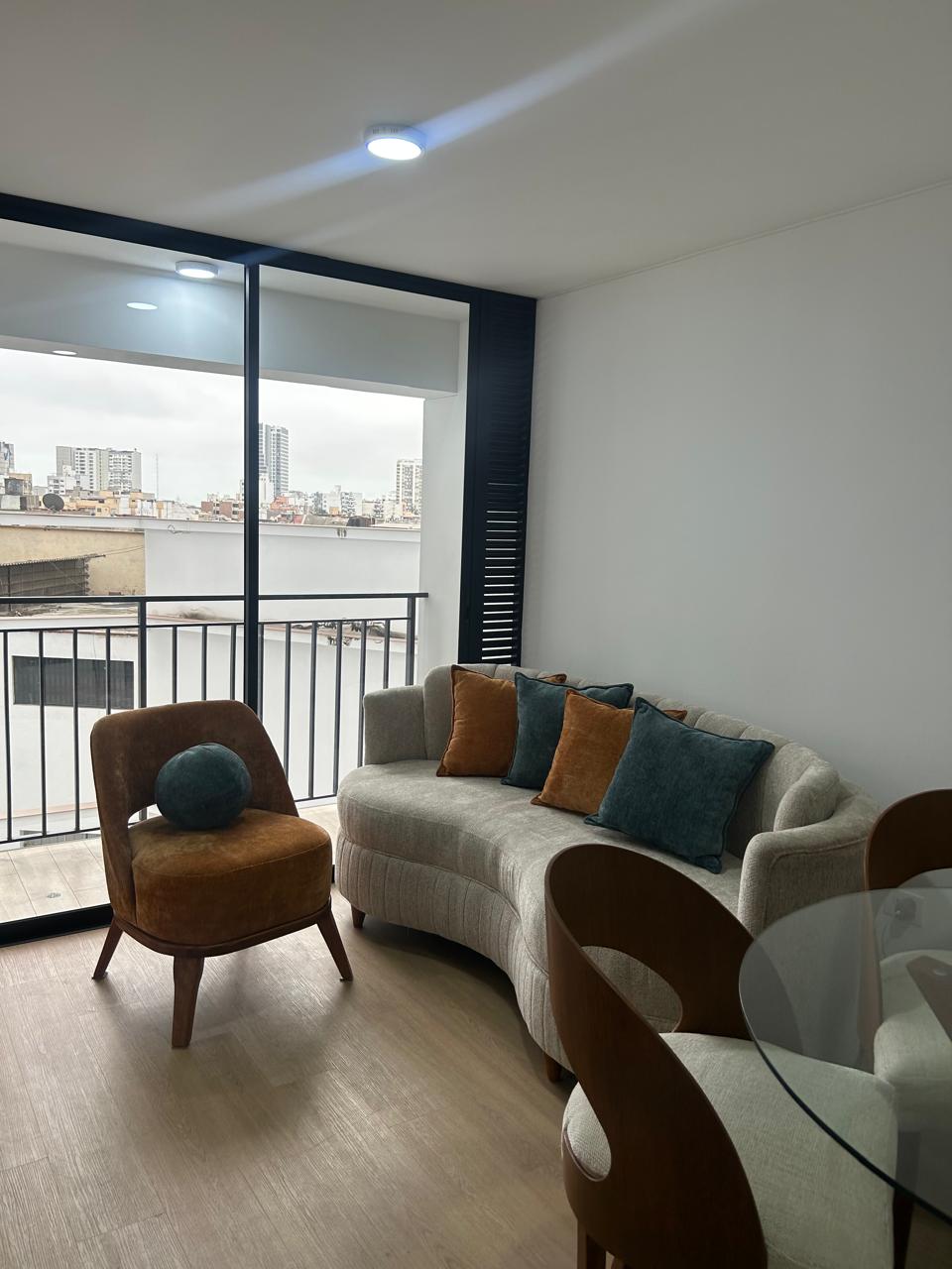 Departamento monoambiente con balcon con vista a la calle. Ubicado en Pueblo Libre a solo 25 minutos del Aeropuerto y 18 minutos del centro histórico de Lima. Cuenta 01 cama de 2 plazas y un sofa cama de 1 plaza, TV con 55" con wifi, mesa - escritorio, menaje completo, microondas, olla arrocera, plancha y planchador, hervidor electrico, refrigeradora, cocina con horno eléctrico, ventilador y terma. Baño con ducha, toallas de baño y mano. Edificio con doble vigilancia las 24 horas.