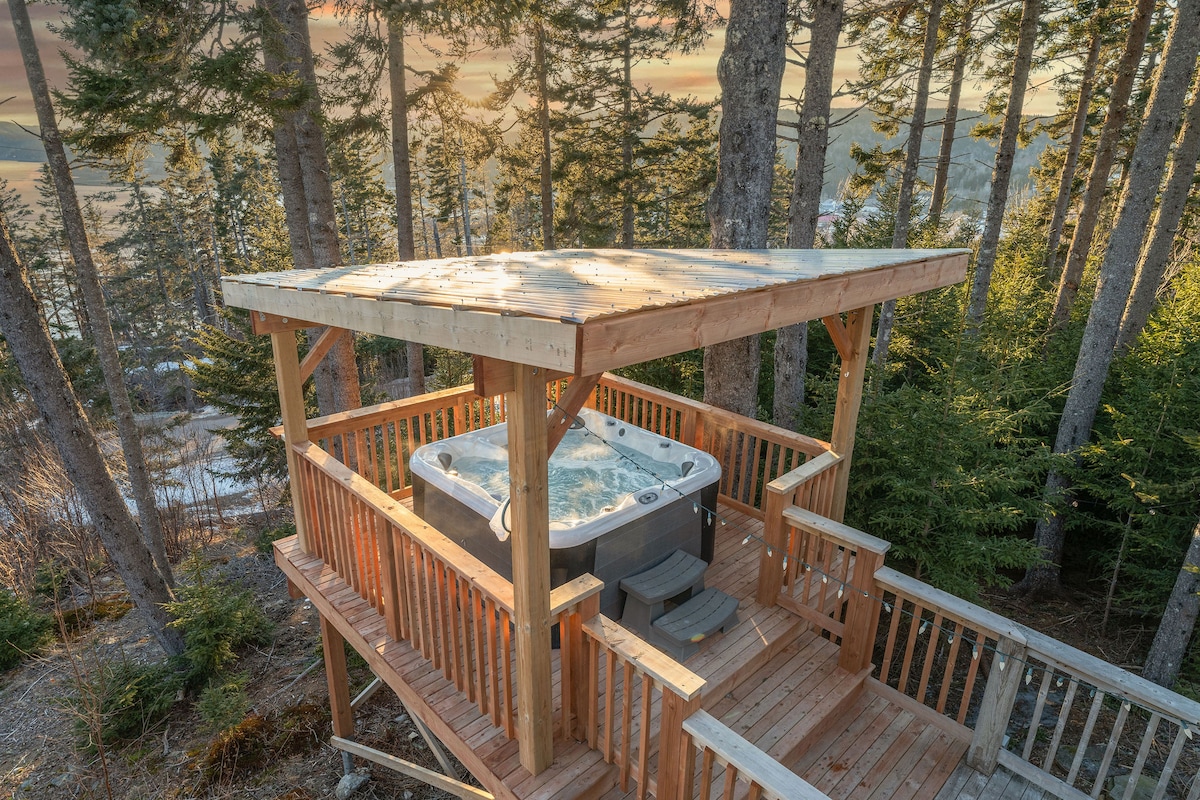 Private, quiet & secluded cabin nestled in the mountain with a sunset view of the Alma valley. Relax & unwind after a day exploring our surrounding gems. Enjoy a romantic & therapeutic hot tub soak with a panoramic stargazing view giving a sense of stillness within nature. 1 Min drive, or 10 min walk to Alma, beaches, Fundy NP, shops, restaurants, waterfalls, hiking, snowshoeing, kayaking, biking, & more! Adventure in day, experience the secrets of relaxation at night - The New Fundy Hideaway.